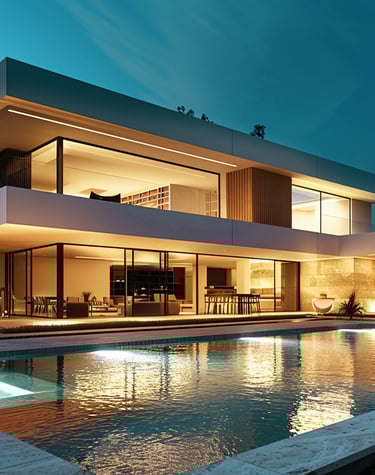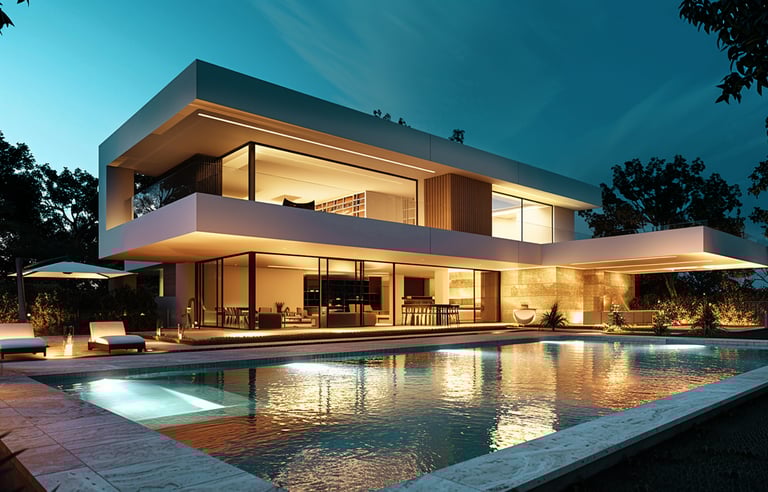 Remodelación exterior e interior con paisajismo moderno y smart home integrado.